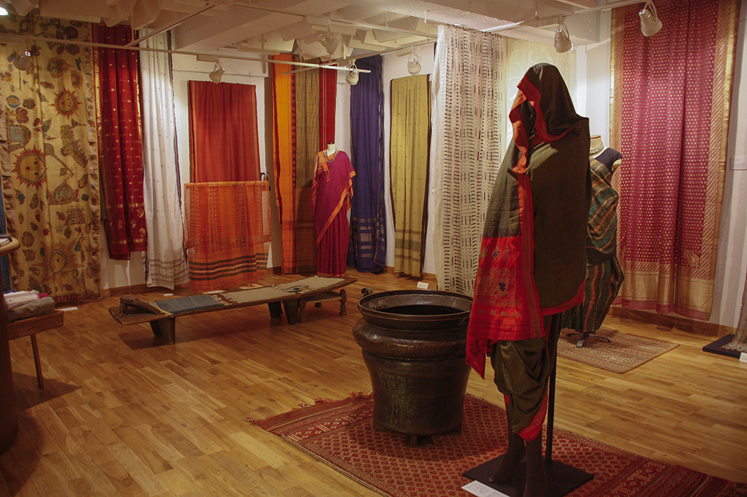 インドの軽やかな薄木綿地はローマ時代から王や貴族の衣装として珍重され、以後もカースト制度に支えられ17-18世紀にはピークに達し、ヨーロッパ、アジアの国々に輸出されました。また、サリーのバラエティは大変なもので、農村と都市部、南と北、西と東と各地で様々な異なる文様、織り方、染め方、刺繍等がありその多様性は世界に類を見ないものです。