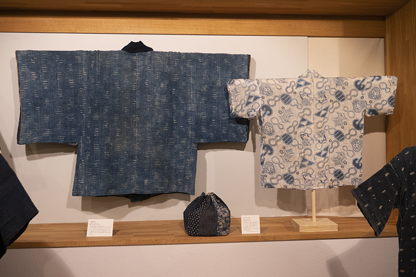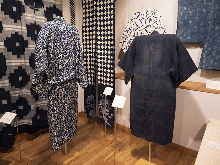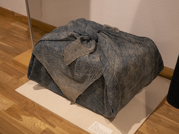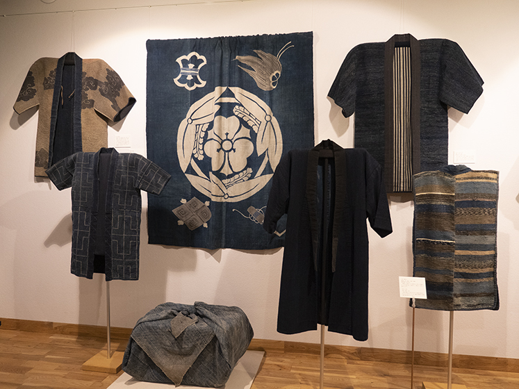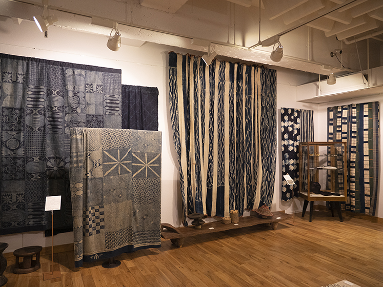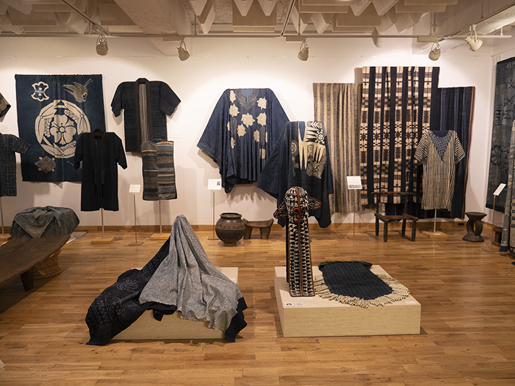 私が日本の藍を集め出したのは大方の他国の藍の収集品が終わった頃である。戦中戦後、目にする木綿は藍ばかりだったせいか、藍は私にとって貧しさの象徴の様な思いがあった。しかし、ボロボロになった藍のつぎだらけの布団地が、Boroとなって外国人を喜ばせ、そのうち私達も、つぎはぎ布の古着の面白さに、美しさを見る様になった。昨年、藍染職人の田中昭夫氏の素晴らしい藍の仕事を、感銘を受けた津田さんと菊田さんの御好意で御寄贈頂いた。この寄贈をきっかけに今展の藍の企画が生まれた。