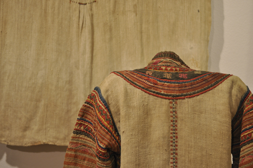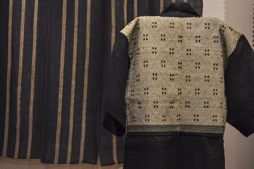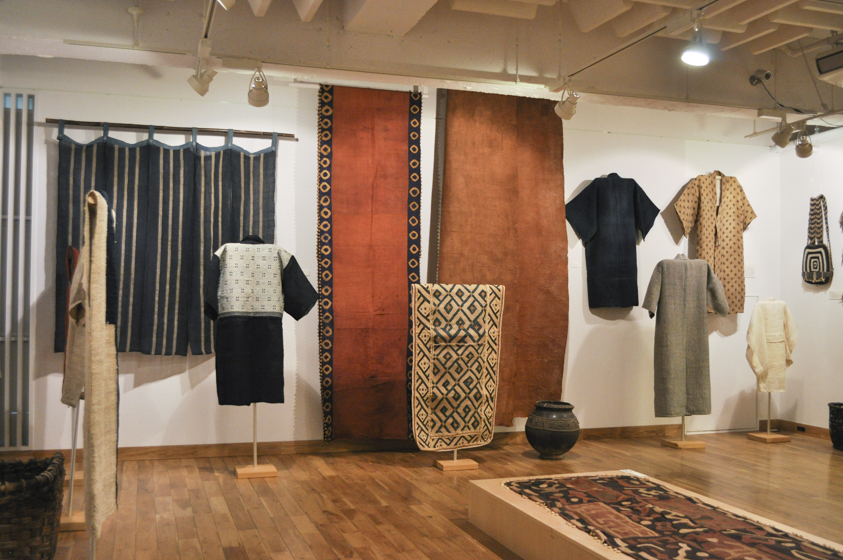 いっぽう日本でも、かつて木綿が普及する以前、大麻をはじめ苧麻や葛、榀、藤、芭蕉といった各地の風土に活かされた繊維が使われていました。この豊富な素材と丹精で美しい手仕事を再認識し、自国の染織品を集めるようになったのはインドや他国の収集が終わってからでした。収集を始めると、それまでは堅苦しいと思っていた「こぎん」の文様も、味わいや面白さが見えてきました。自然布と呼ばれるこれらの布の数々はすでに過去のものとなっているところもありますが、今日でも技術が受け継がれている様子を見ると、布の実用と同時になにか精神的な必然性があるような気がします。現代において希薄になりつつある自然と人間の豊かな関係を、原始布を見つめることで、いま一度考え直すきっかけになればと思います。