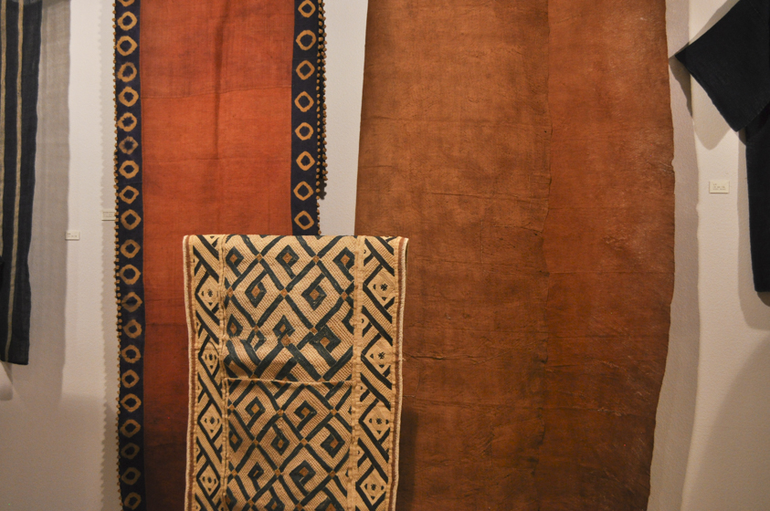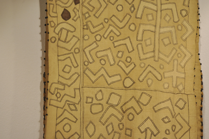 今回は「原始布」というテーマで、アフリカ・日本をはじめ、世界各地の草木から採集した繊維の布を展示します。表紙に使われているクレーの絵の様な文様の布は、中央アフリカに位置するコンゴ民主共和国のクバ王国、ブショング族のものです。ンチャックと呼ばれ女性の巻衣装、死装束にも使われる大事な布で、一生かかっても数枚しか作ることができないそうです。1980年代に入り、集め始めたアフリカの染織品は、どれもダイナミックな手仕事の面白さがあり、幾何文が圧倒的で、インドの草花を主とする具象文を見慣れた目には、まるでジャズの世界に引き込まれた様な新鮮な驚きでした。また、ラフィア椰子の繊維から作られるこの布を完成させるまでの一連の仕事は、村の子どもから大人までたくさんの人々が関わって作られます。その独特で普遍的な文様を支えているのはラフィアの素材としての強さと、ブショングの人々が送る日々の営みの逞しさではないでしょうか。